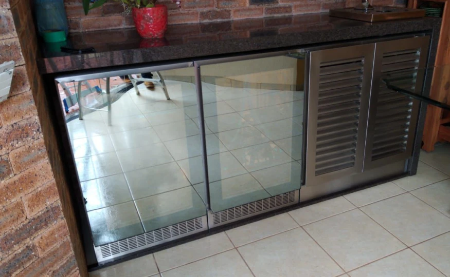 O acabamento das portas pode ser aço Inox 304 escovado, revestido de marcenaria, ou nosso vidro triplo refletivo com tecnologia Low-E, possuindo gás argônio entre os vidros para garantir o melhor isolamento térmico e diminuir a sudação do vidro, preservando a qualidade das bebidas e dos alimentos.