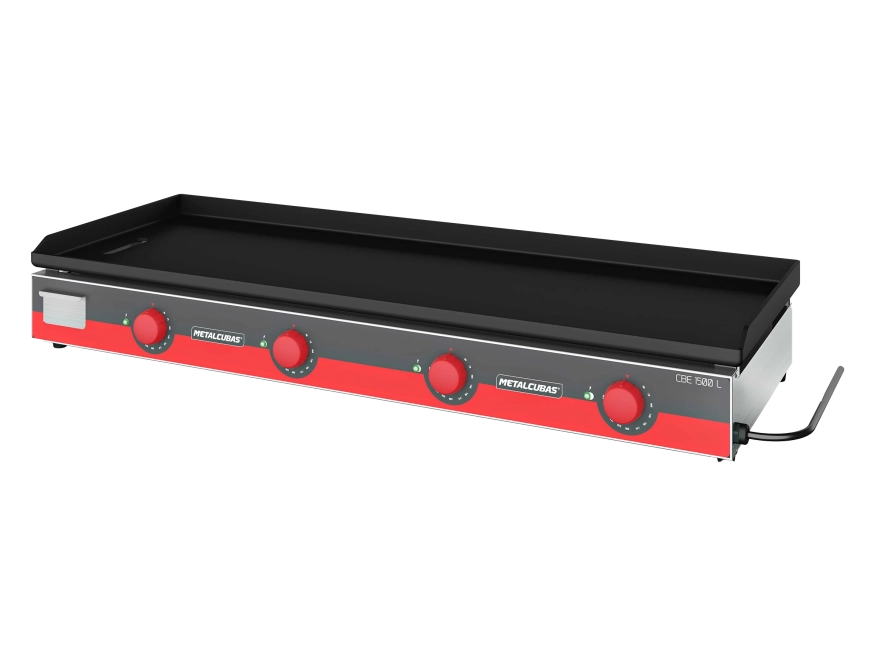 Termostato individual por resistência, chapa superior dobrada em aço SAE 1020 na espessura de 3/16 no modelo CBE 450L, 1/4 nos modelos CBE 600L, CBE 800L, CBE 1000L e CBE 1200L e de 5/16 na CBE 1500L.