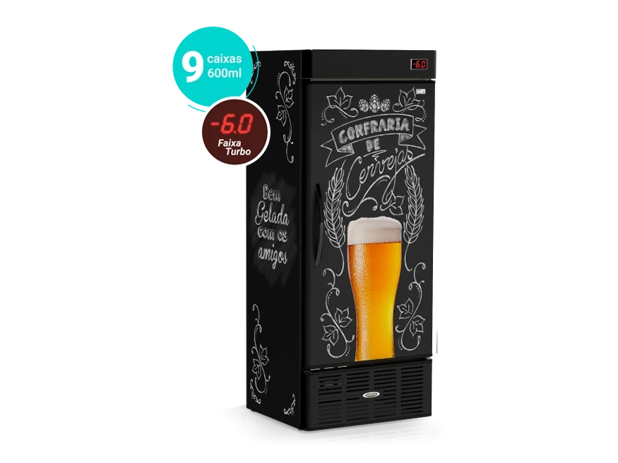 Ela acomoda 560 latas ou 308 garrafas long neck ou 216 garrafas comuns.