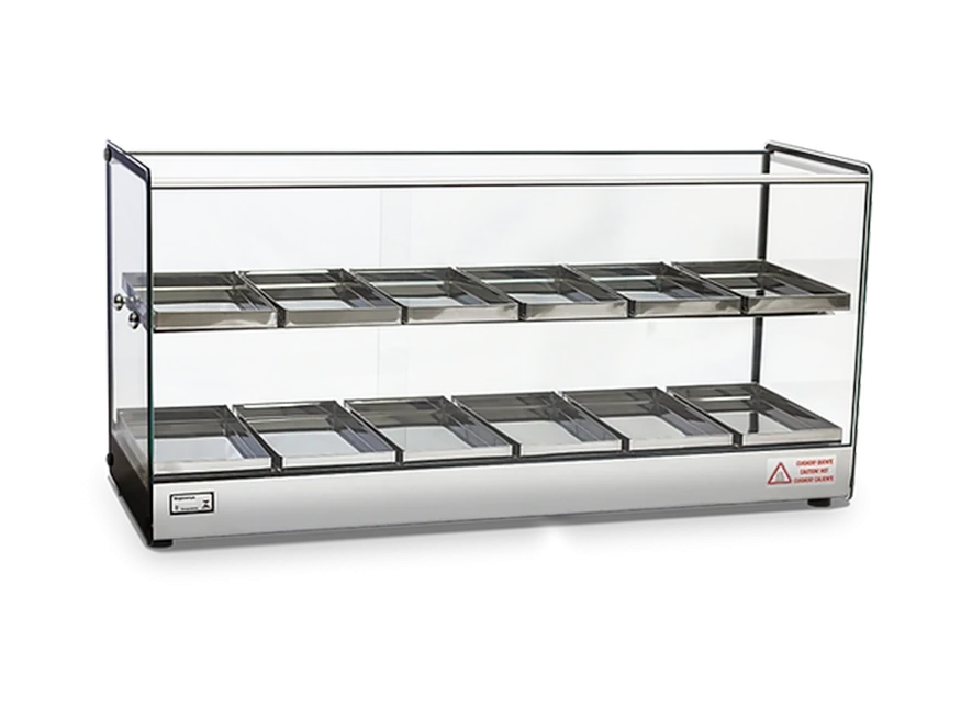 Seu design clean e compacto confere melhor visualização dos produtos, além de preserva-los quentes e saborosos.