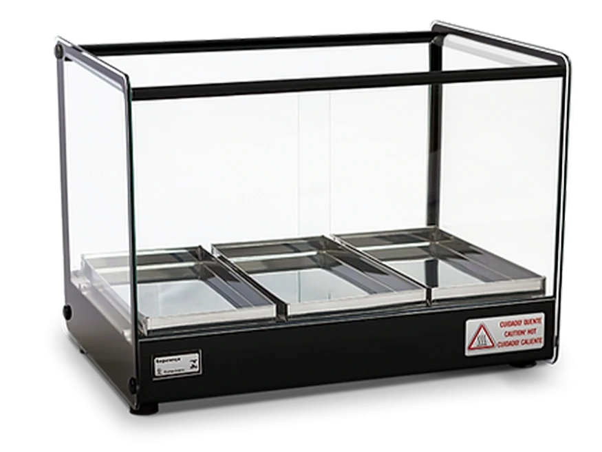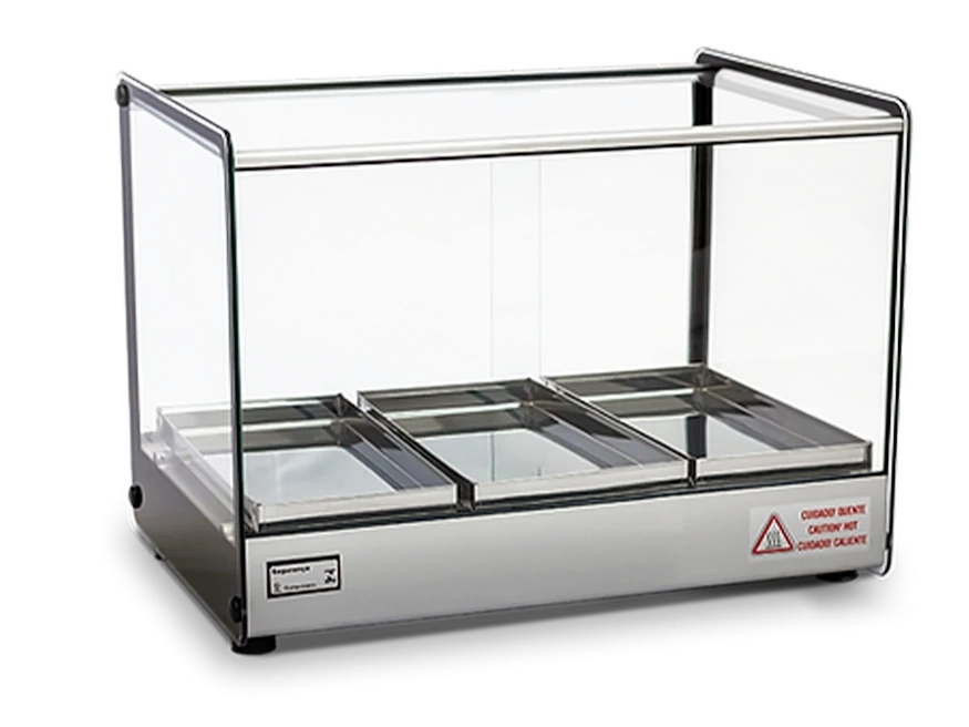 Seu design clean e compacto confere melhor visualização dos produtos, além de preserva-los quentes e saborosos.