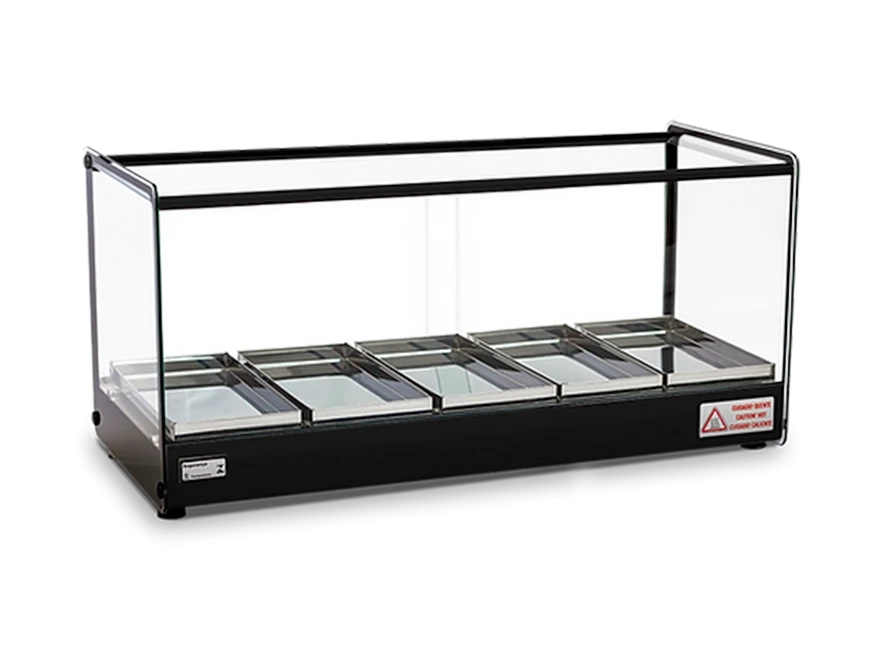 Seu design clean e compacto confere melhor visualização dos produtos, além de preserva-los quentes e saborosos.