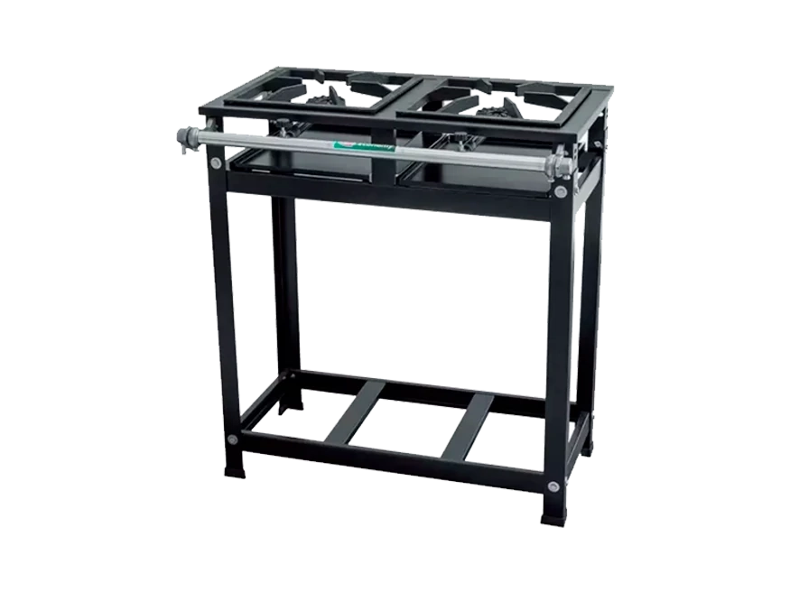 a começar com os queimadores feitos completamente de ferro fundido, assim como uma mesa de aço carbono, pintado em preto fosco com material resistente que tanto confere ao equipamento uma estética mais elegante, quanto protege seu material de fenômenos corrosivos.