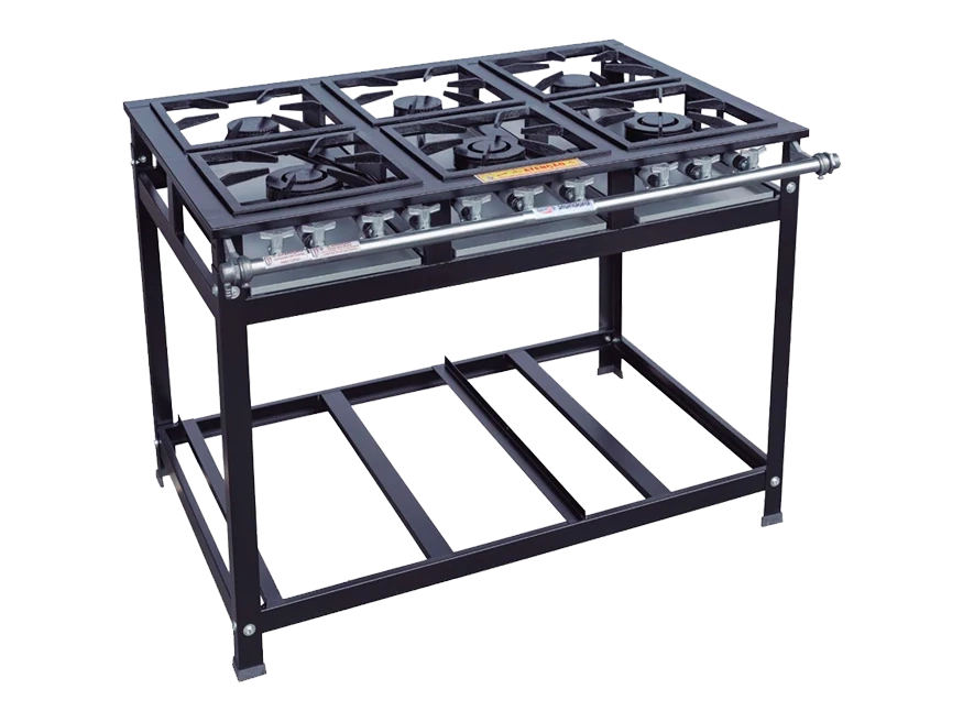 a começar com os queimadores feitos completamente de ferro fundido, assim como uma mesa de aço carbono, pintado em preto fosco com material resistente que tanto confere ao equipamento uma estética mais elegante, quanto protege seu material de fenômenos corrosivos.