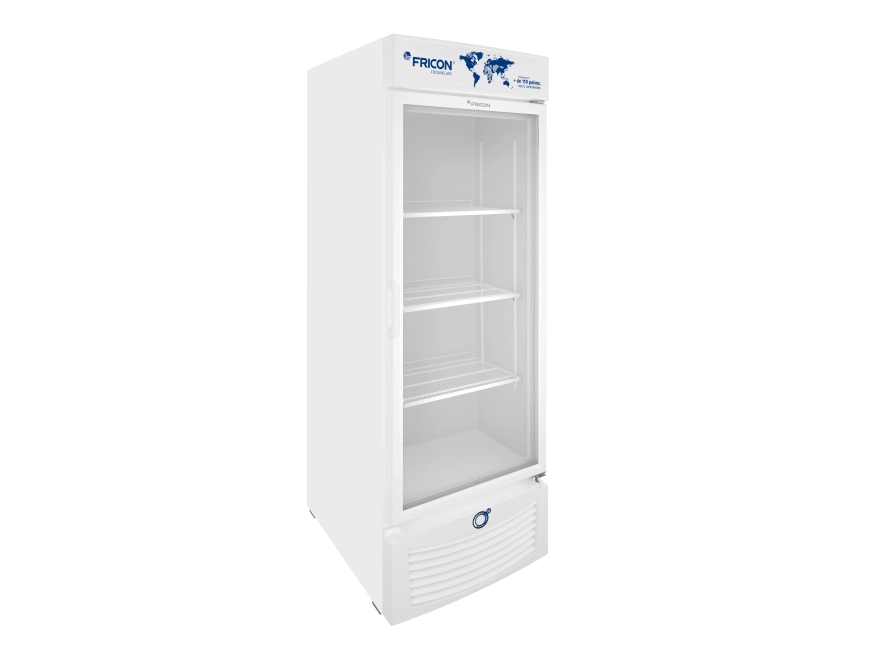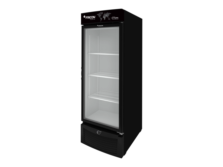 Possui refrigeração estática e porta de vidro duplo temperado com aquecimento baixo emissivo.