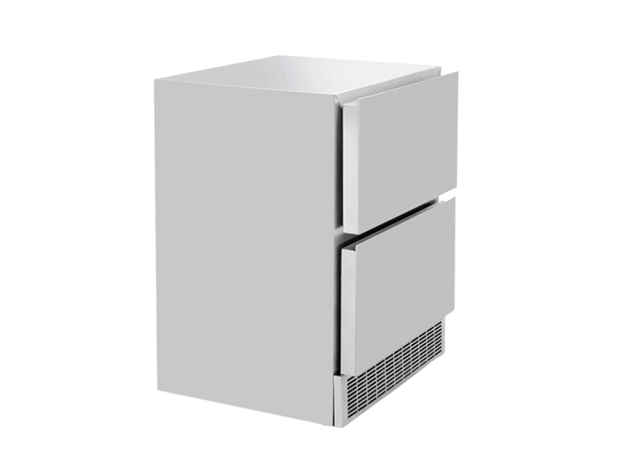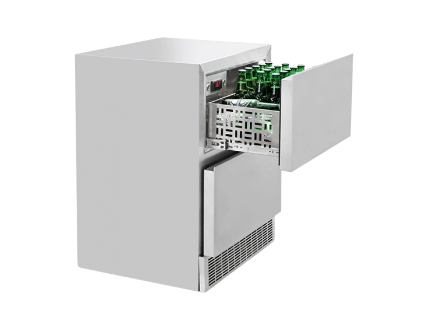 O acabamento externo das gavetas pode ser aço inox 304 escovado, revestido de marcenaria, ou nosso vidro triplo refletivo com tecnologia low-e, possuindo gás argônio entre os vidros para garantir o melhor isolamento térmico e diminuir a sudação do vidro, preservando a qualidade das bebidas e dos alimentos.