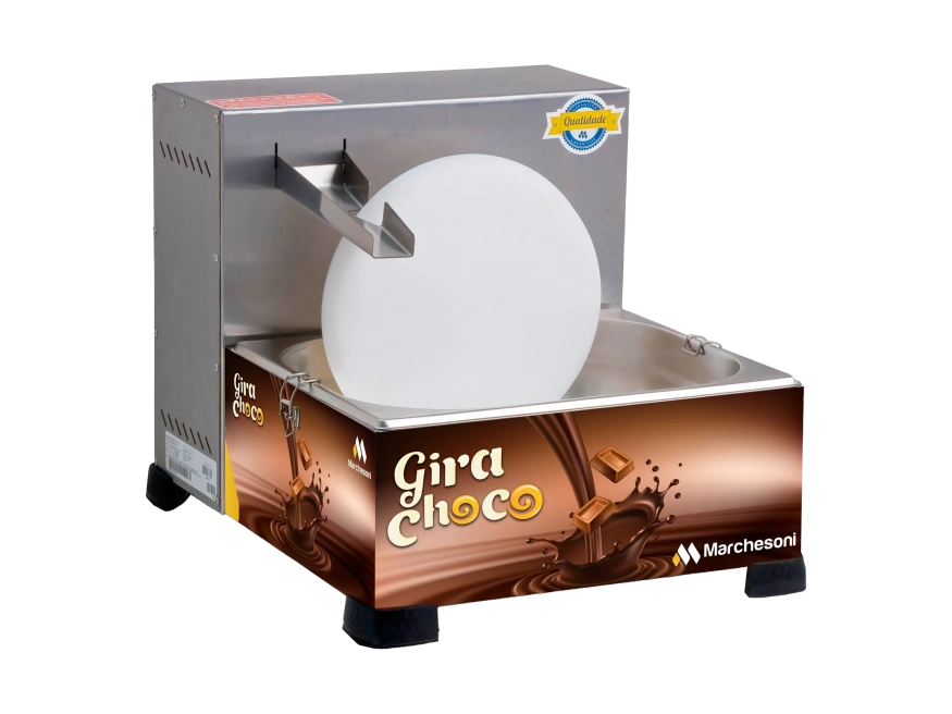 O Gira Choco Marchesoni é perfeito para uso comercial e em eventos! Assim como as derretedeiras, o Gira Choco aquece e derrete através do sistema “banho-maria”, garantindo a consistência e o sabor do chocolate. Nas festas,eventos e buffets, seu diferencial é o divertido efeito cascata, com uma deliciosa queda de chocolate ideal para um fondue.