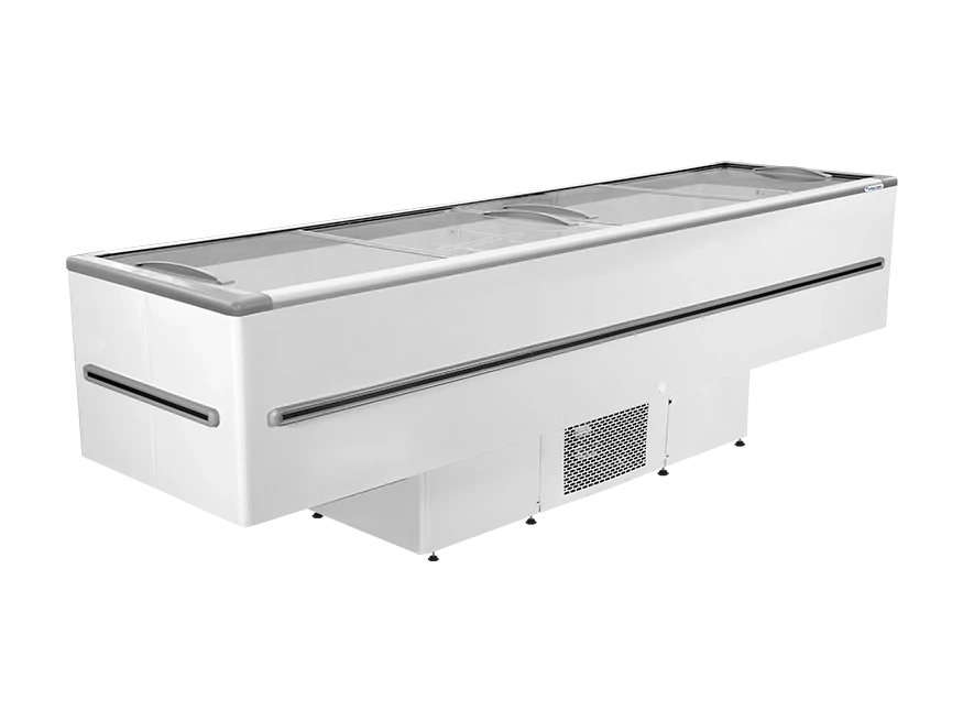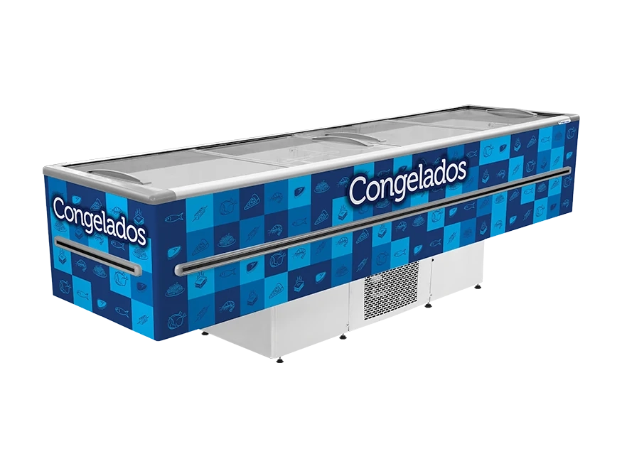 A ilha ICED 820 da Fricon possui cinco divisórias e tampas de vidro com vedação de alta eficiência, permitindo organizar alimentos com mais facilidade para o seu comércio e mais segurança no armazenamento dos seus produtos.