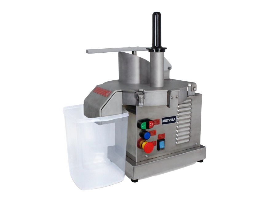 O Multiprocessador Industrial de Alimentos Metvisa é feito para restaurantes, pizzaria e afins, com o propósito de fatiar, desfiar e ralar produtos alimentares diversos.