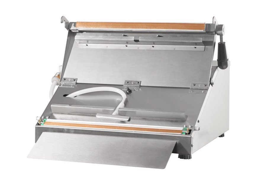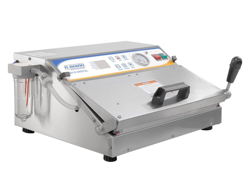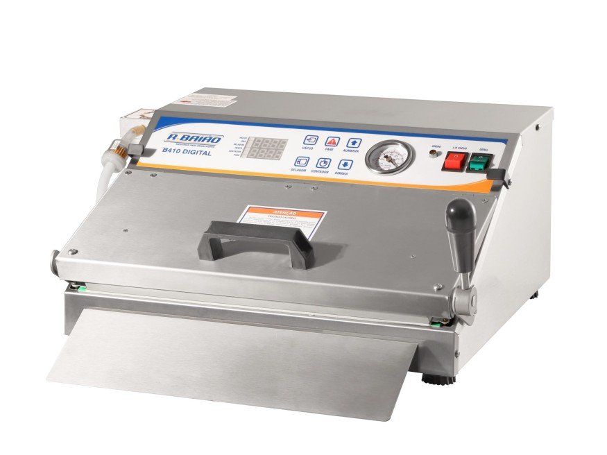 A Seladora a Vácuo de Bico de Sucção B410 é construída em estrutura robusta de aço inox 430 escovado, um modelo desenvolvido para atender comércios e pequenas indústrias.